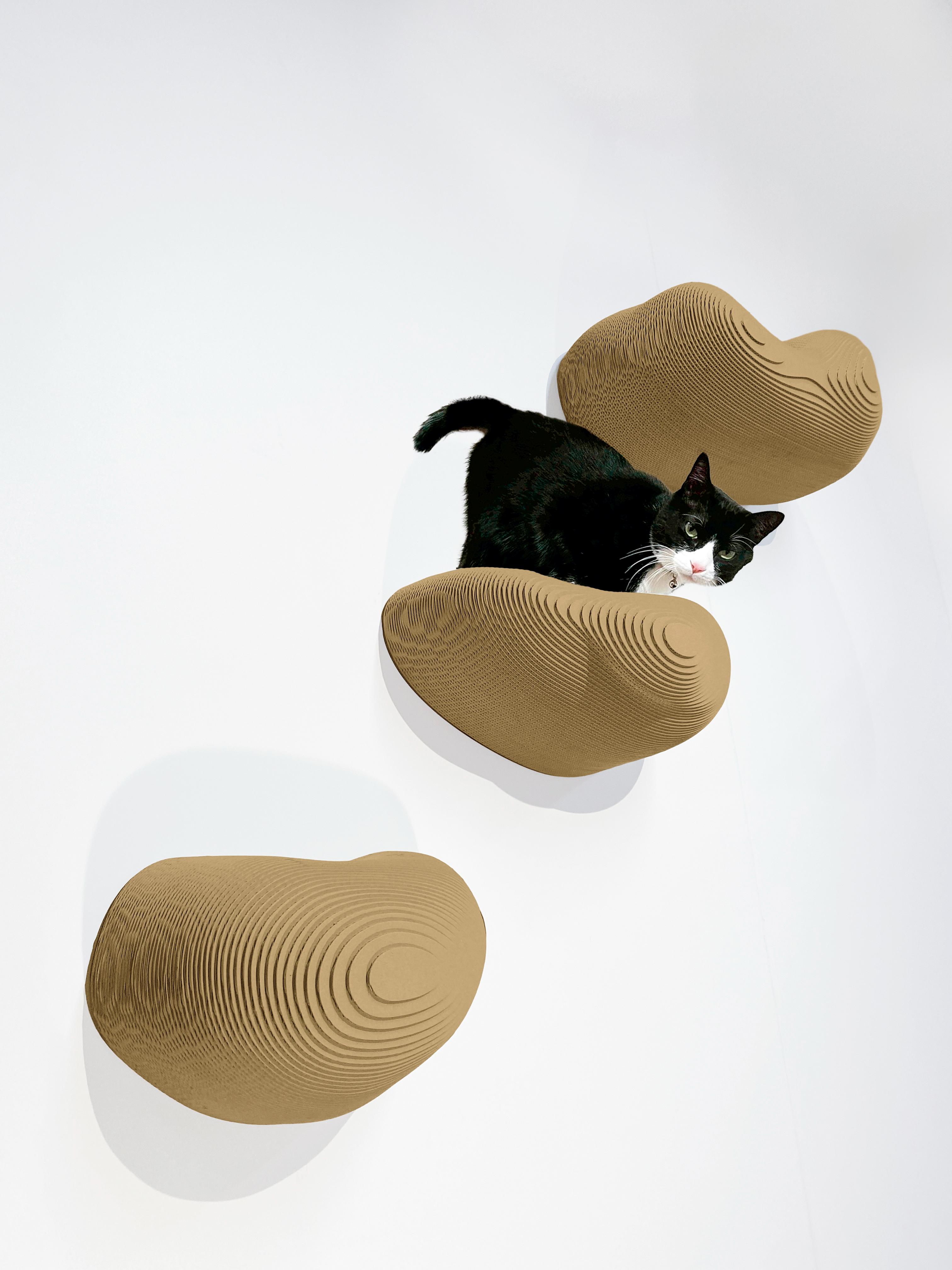 「にゃんだリング」は段ボール製のマグネット型猫用ボルダリング。愛猫が鉄壁につけた製品へ上がったり下りたりすることで、運動不足やストレスを解消することができます。
