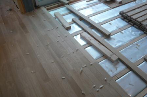 床下に水入りパックを敷設し、太陽エネルギーや冷暖房の熱を水に蓄えて、室内全体へ穏やかに放熱・放冷する床下蓄熱システム。水の高い蓄熱性で快適な室温に調整します。