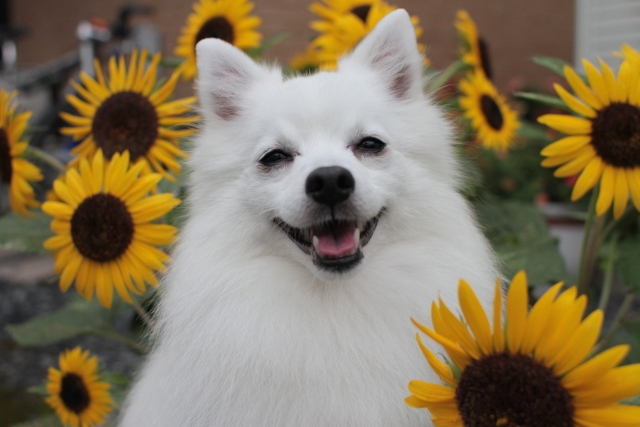 白くふわふわした被毛と、優しい表情が魅力の日本スピッツ。