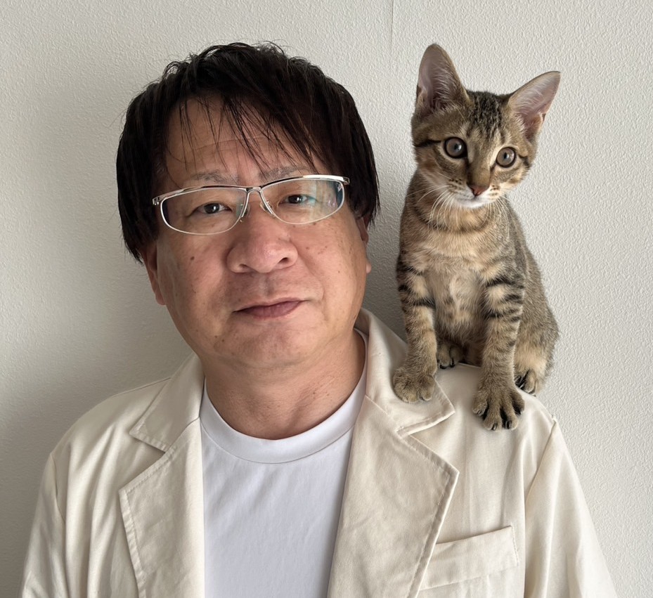 代表取締役社長 長田 雅彦さんと最近保護したナツくん高校卒業後、ハウスメーカーに就職し、営業として住宅業界での経験を積む。その後、フォーユーホームでは、営業や設計も担当。愛猫は「ハルちゃん」(女の子・9歳)と「モモちゃん」(女の子・5歳)