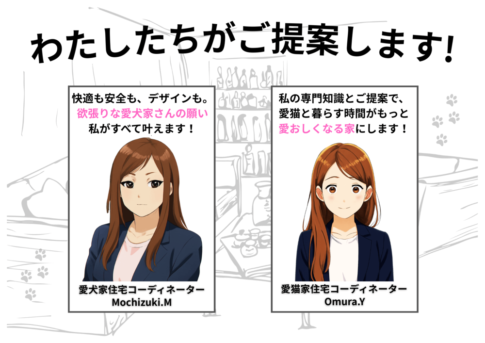創業60年を超える歴史の中で、私たちは地域の住まいを見つめ続けてきました。静岡市を中心に、長く培った深い地域密着の知恵と技術。それが、ご家族とペットの「本当に心地よい空間」を形にする私たちの礎です。この度、愛する家族であるペットが、より安全に、より自由に、そして何よりもっと笑顔で過ごせる家を追求し、専門的なペットリフォームをスタートしました。確かな技術と、コーディネーター資格を持ち、自身もペットオーナーである専門スタッフの確かな知識と経験で、ペットオーナーとしての深い共感を込め、人にもペットにも最高の住環境をお届けします。