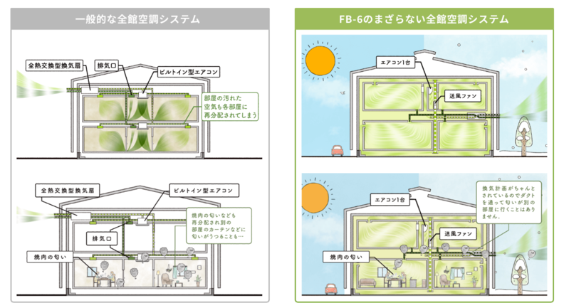 【部屋ごとの空気が混ざらない!?ーFB-6工法の全館空調と換気システムの 特徴】