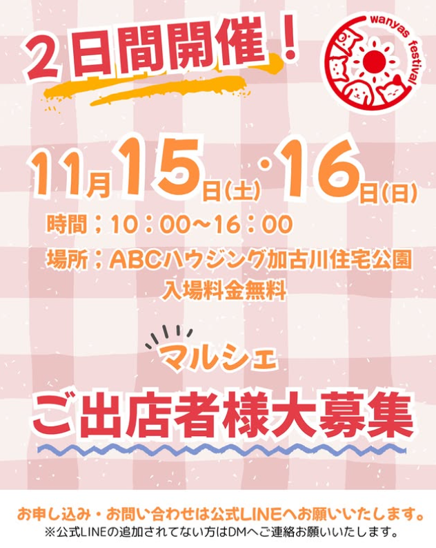 詳細:1年に一度開催のわんにゃんマルシェ@住之江公園 vol.6始動します!😊🐶😸たくさんのわんにゃんたち!みなさまのご来場お待ちしております☆今年も楽しんでいただけるようスタッフ一同がんばります😊💪🐾