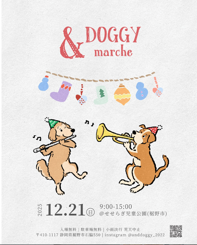 詳細:2025年の終わりにアンドギで心温まる時間を過ごせる場所に。。。✨家族でゆっくり愛犬との1年を振り返ったり、友達と待ち合わせて感謝を伝えたり、来年からも楽しもうねと予定を組んだり...そんな場所になることを願っています。12/21(日)は静岡県裾野市でみなさまのお越しをお待ちしております🪅