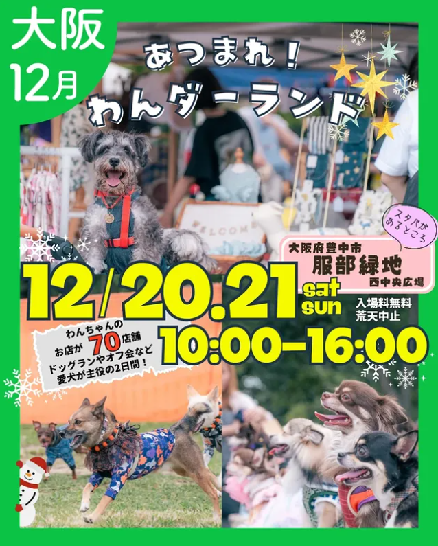 ドッグランでストレス発散!服部緑地のドッグランはわんダーランド開催時間のみ😳今年最後の思い出づくりに、ぜひ遊びに来てね🌟