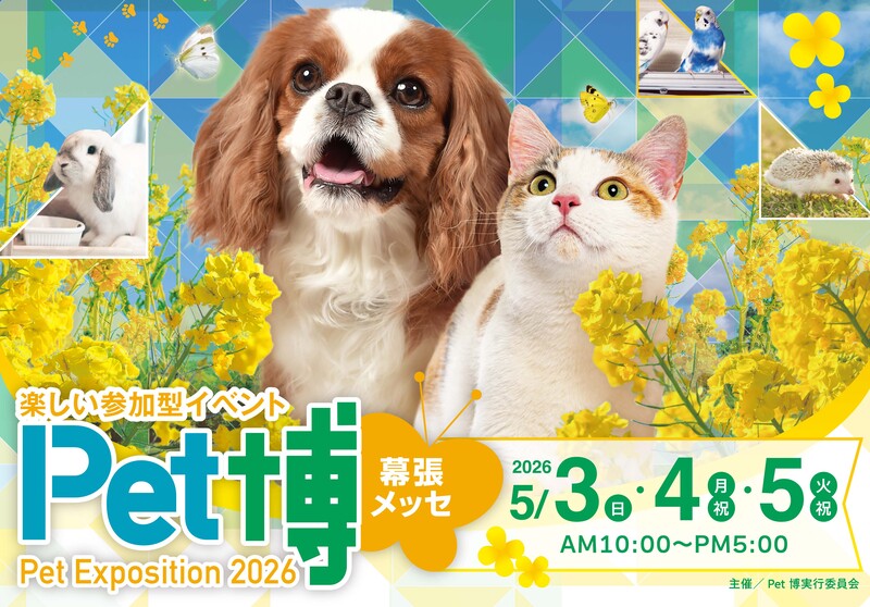 2026年5月3日(日)~5日(火・祝) 、千葉県千葉市「幕張メッセ」でペットを飼っている方はもちろん、動物好きなら誰でも楽しめる恒例のペットイベント開催!
